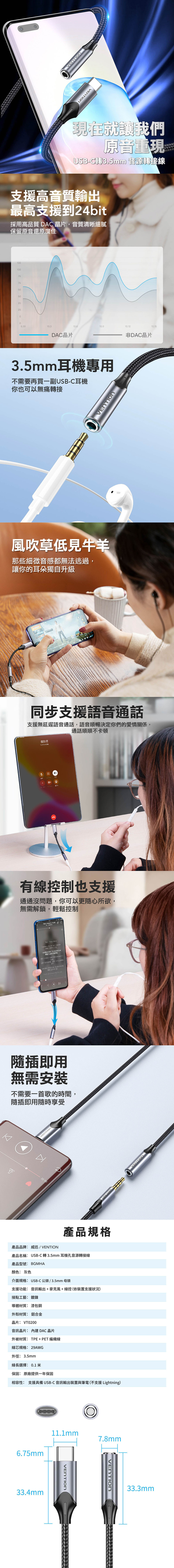 USB-C 轉 3.5mm 耳機孔音源轉接線
