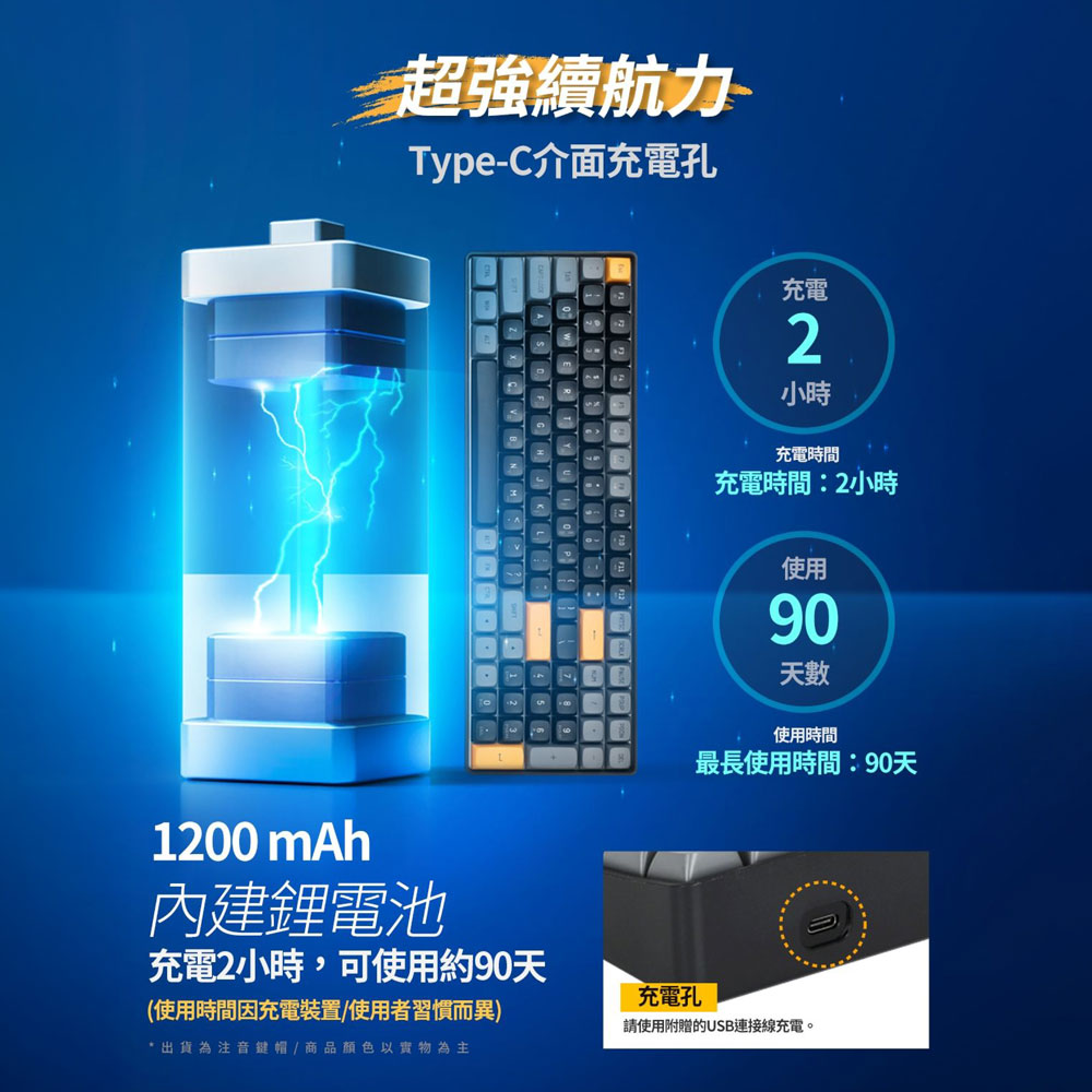 >>連接有線使用可以將內附的Type-C 連接線電腦主機做使用,並且同時也能為您的鍵盤同步充電。