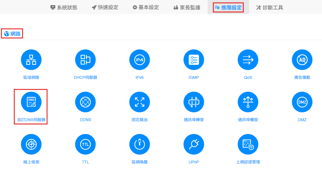 步驟 1: 進入「進階設定」 > 「網路」 > 「自訂 DNS 伺服器」