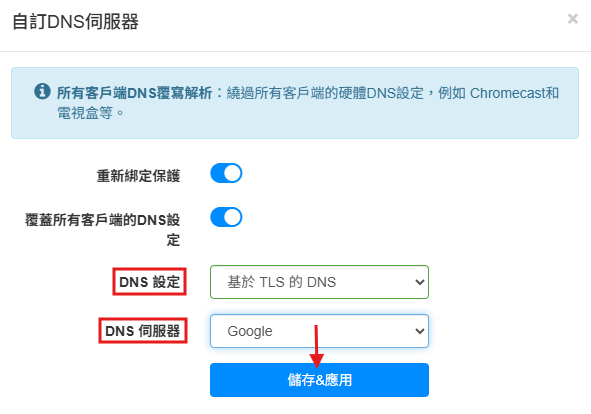 步驟 3:開啟「覆蓋所有客戶端的 DNS 設定」