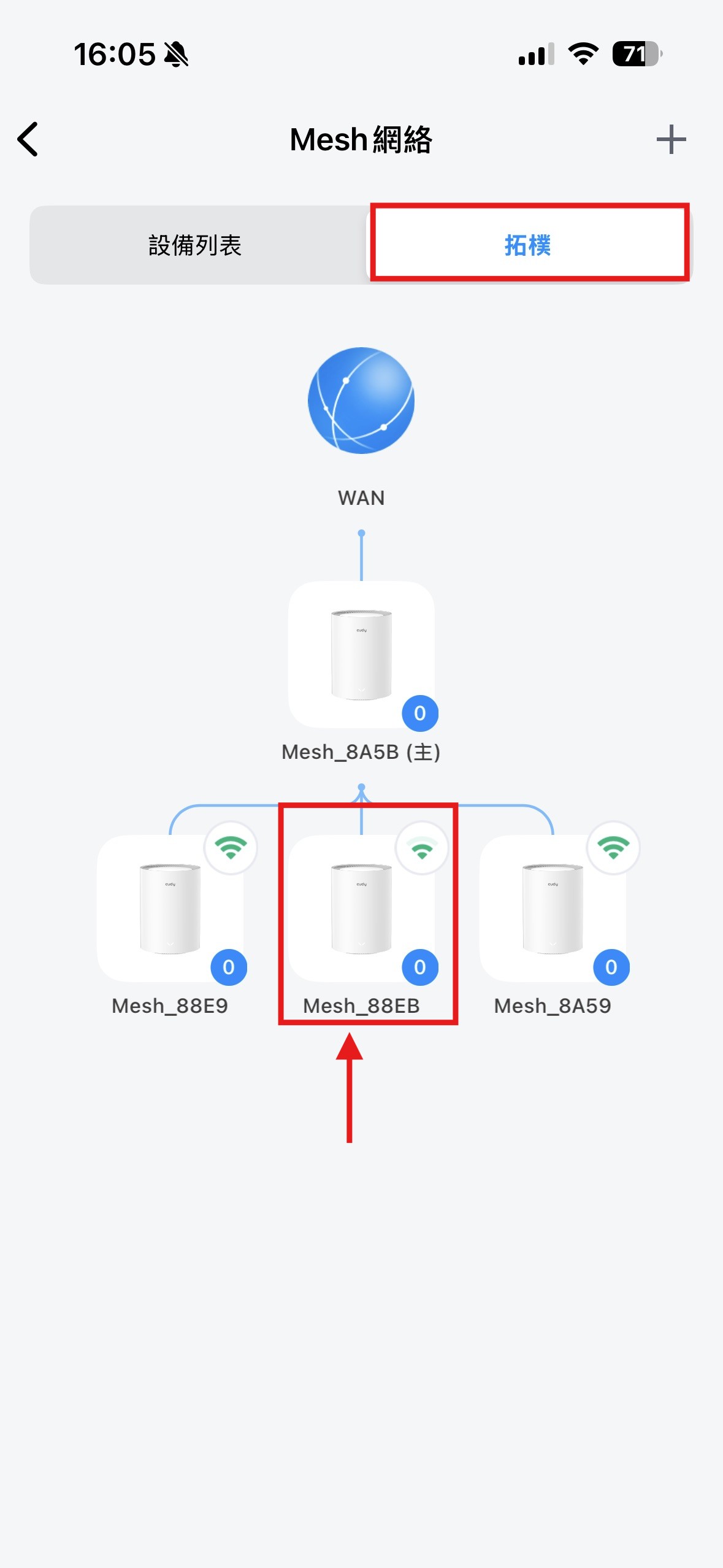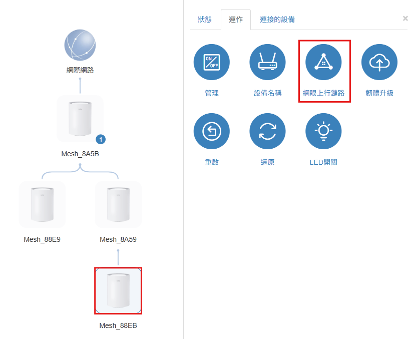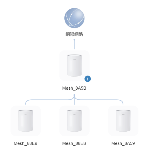 查看拓樸圖: 變更完成後,在拓樸圖中即可看見 Mesh 路由路徑已更新