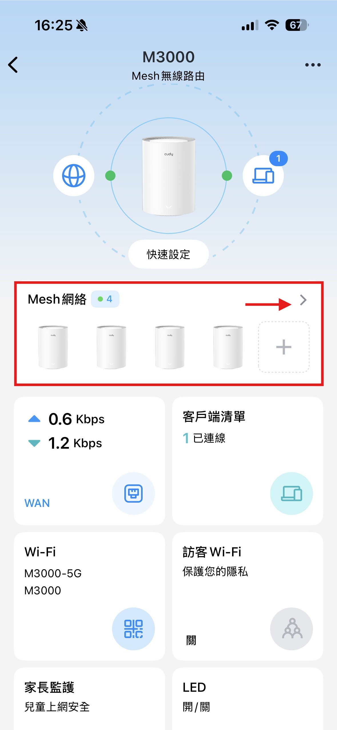 Cudy M3000 的 Mesh 網路雖然會自動組網,但使用者也能透過手動方式調整子路由的上行設備,以優化訊號傳輸路徑。以下分別提供 Cudy App 以及 Web 網頁版 的設定步驟